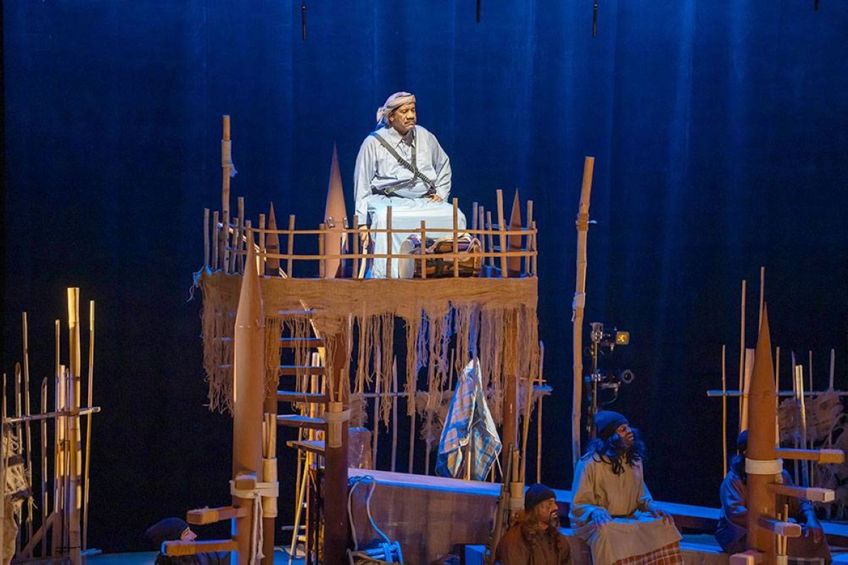 ترتفع الأهازيج الصحراوية، شخصيات تتحرك، تغني وترقص على إيقاعات تقليدية شعبية. وعناصر السينوغرافيا المسرحية، وأداء الممثل مع نص شاعري بنفس عربي ممتع، مقومات لتفكيك رسائل العمل، حيث يتغنى العرض بالتراث البدوي الصحراوي، ويقدم الأهازيج البحرية التراثية، وأغاني من الذاكرة الشعبية المنسية، يحييها كاتب النص إسماعيل عبدالله، ويبعث فيها المخرج حسن رجب الروح، ليتم تقديمها في إطار تمثيلي واحتفالي.